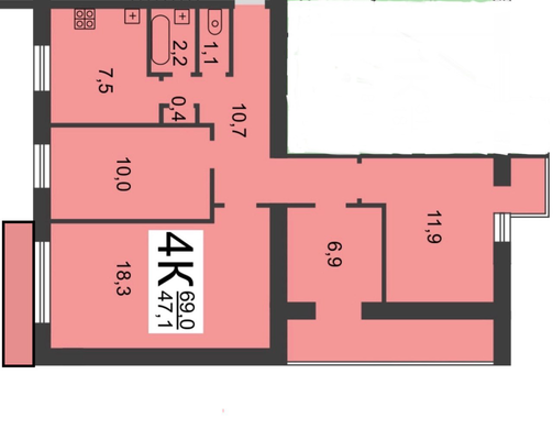 4-к квартира 70 м² на 4 этаже 9 этажного панельного дома