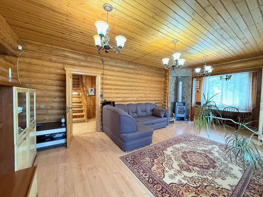 В доме удобная с практической точки зрения планировка: 2 жилых этажа плюс цокольный с подсобными помещениями. Первый этаж - большая гостиная, отдельная кухня, кабинет, санузел с душевой кабиной; второй этаж - 3 спальни, второй санузел с ванной; цокольный этаж - котельная, прачечная и другие подсобные помещения. Кроме того, в доме большой отапливаемый гараж на 2 авто, плюс навес, где также можно припарковать 2 автомобиля.