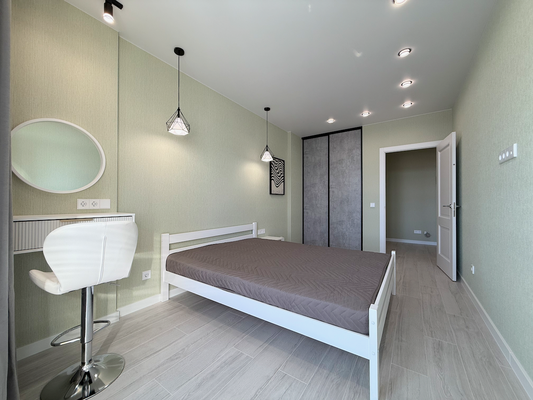 Современная и функциональная европланировка, задействован каждый сантиметр полезной площади: просторная кухня-гостиная, удобная спальня, практичная гардеробная, большой холл, практичный санузел с ванной и тропическим душем, дизайнерская расстановка света по всей квартире, тёплый пол, инсталляция, дополнительный бойлер. Плюс преимущество квартиры, что сверху нет соседей, никто не топает над головой.