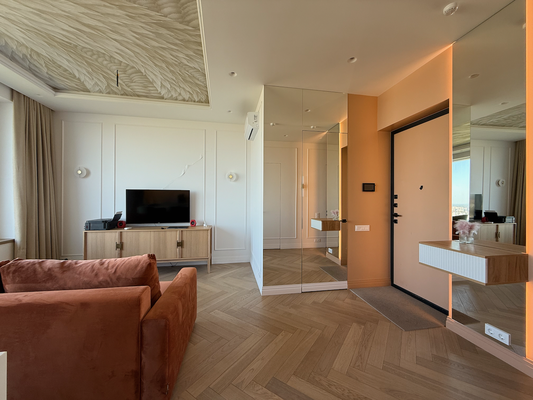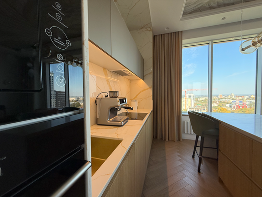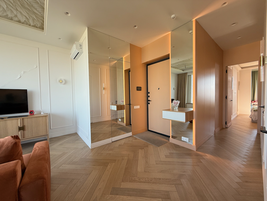 В квартире выполнен шикарный дорогостоящий ремонт по индивидуальному дизайн-проекту, с использованием исключительно экологичных импортных материалов, силами профессиональной строительной бригады. Ремонт делали для себя, сил и средств не жалели, всё новое, в идеальном состоянии.
